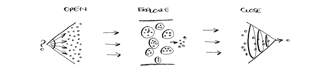 There are many different types of participatory process that can be employed by a facilitator but at their core, are three generic phases i.e. Open, Explore, and Close. We provide a brief description here by way of example:
